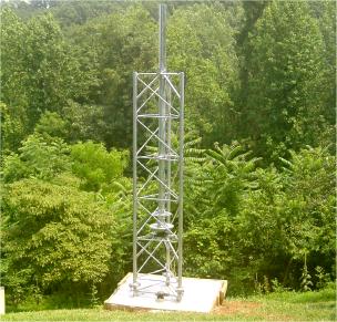 Tied down for hurricane Isabel. Not quite vertical, but close enough to keep the cross-section down some. Winds hit over 65 MPH, but it held steady.
